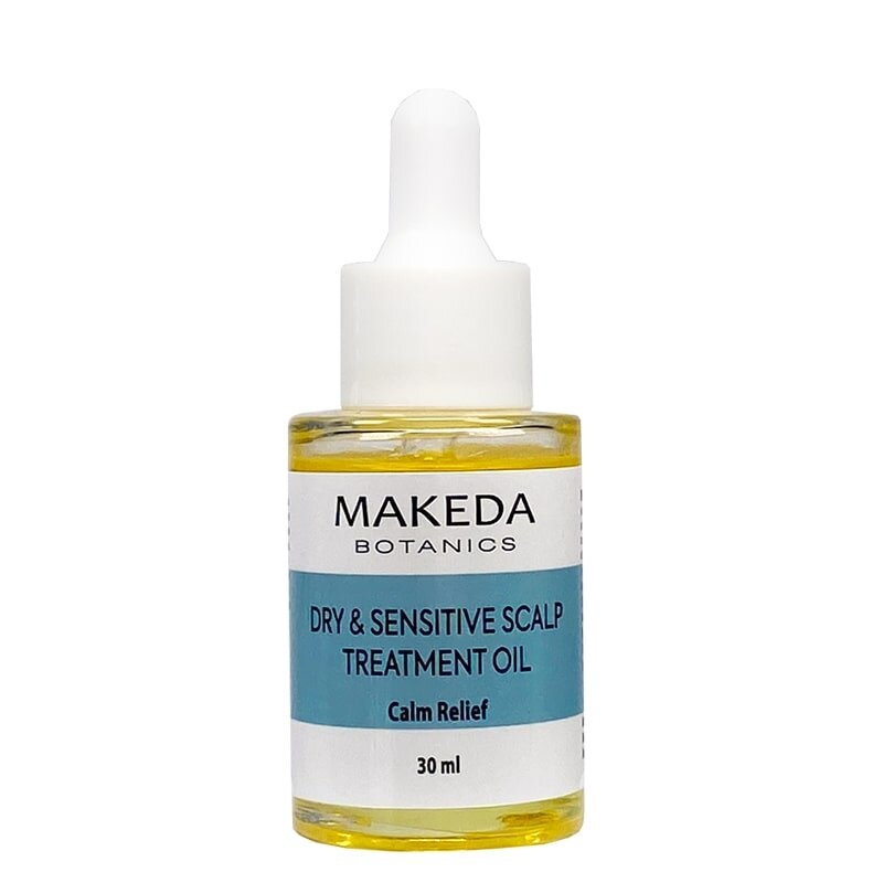 Dry and Sensitive Scalp Treatment oil MAKEDA Botanics облекчава сърбежа и намалява пърхота, благодарение на антибактериалните сили на натуралните масла от Чаено дърво и Жожоба. Действа подхранващо и овлажнява здравословно скалпа, като поддържа необходимия му хидробаланс. Маслото за сух и чувствителен скалп MAKEDA Botanics действа подхранващо и овлажнява като поддържа здравословния хидробаланс. Успокоява възпаленията и балансира отделянето на себум. То помага в борбата с косопада и трайно заздравява скалпа