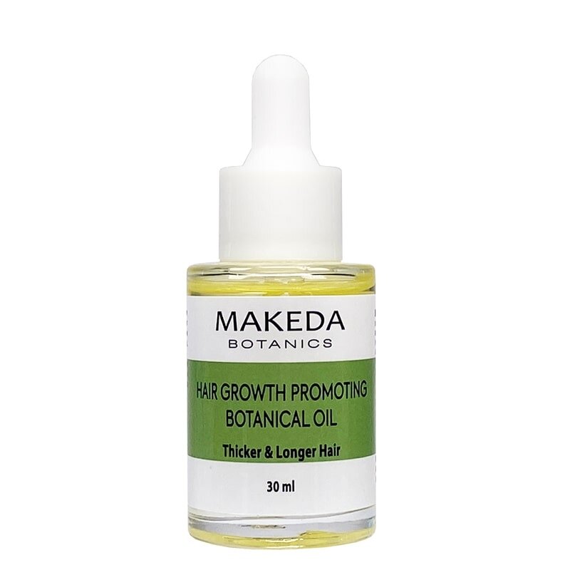Ботаническото масло за растеж MAKEDA Botanics тонизира скалпа и събужда "заспалите" фоликули. Стимулира микроциркулацията на скалпа и влияе върху косопада. Hair Growth Promoting Botanical Oil MAKEDA Botanics ускорява растежа на косата и заздравява скалпа. Натуралната формула стимулира израстването на нова коса и уплътнява структурно косъма. Действа в дълбочина, като стимулира процесите на микроциркулация в скалпа, укрепва хидро-липидния слой и фоликулите. Поддържа необходимия здравословен хидробаланс и не предизвиква омазняване.Подходящо е за жени и мъже, които искат да се справят с косопада и да поддържат косата си гъста и по-плътна.