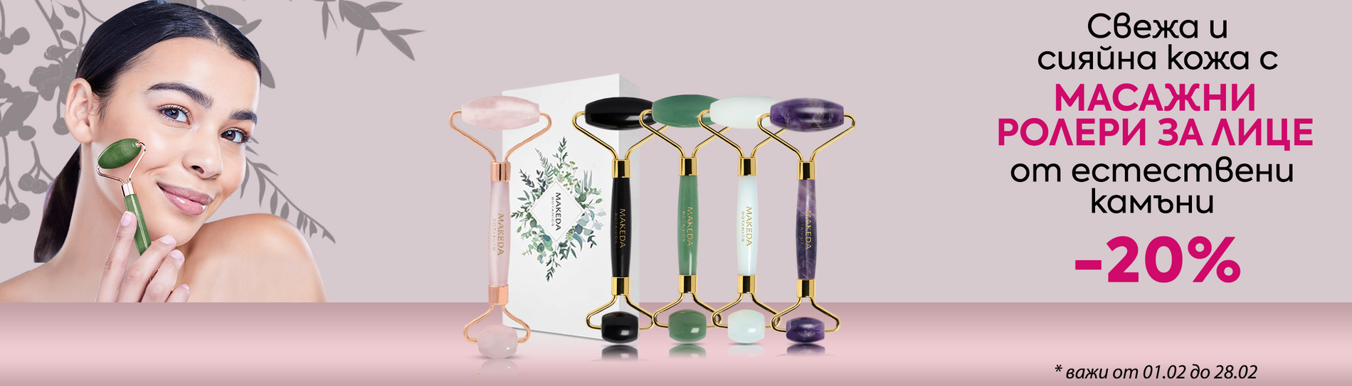 РазпродажбаFace Roller Rose QuartzДвоен масажен ролер за лице РОЗОВ КВАРЦ
